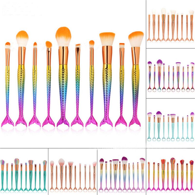 New Mermaid Brush Rainbow Makeup Brushes Set Cream Face Power Brushes Kits Multipurpose Beauty ...