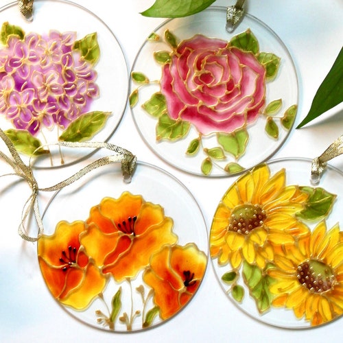 Stained Glass Panel - Mokara Orchid Trefoil Floral Stained Glass Window Hangings - Window Treatments